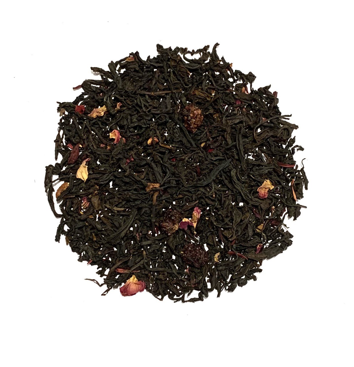Индийский чёрный чай, каркаде, ягоды клубник и ежевики, лепестки розы.