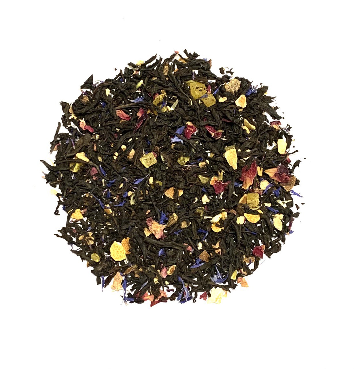 Черный чай Цейлон, ананас, папайя, цедра апельсина, лепестки василька, сафлора и розы.
