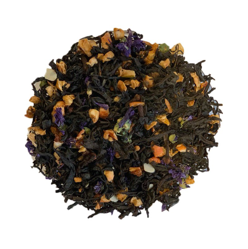 Новогодний пикантный купаж с марципаном. Индийский чёрный чай, яблоко, корица, гвоздика, миндальные лепестки, мальва цветы