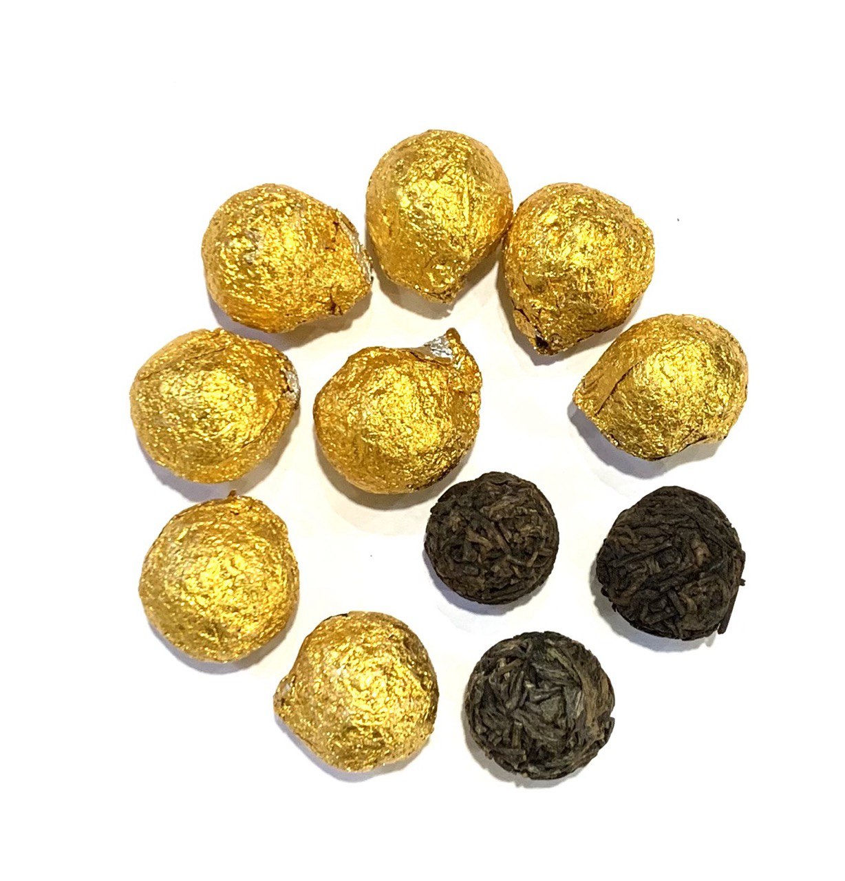 Для удобства спрессован в шарики Юань Ча (Yuan Cha, 圓茶). Шары удобны для транспортировки и дозирования, часто один шарик рассчитан на одну-две заварки.