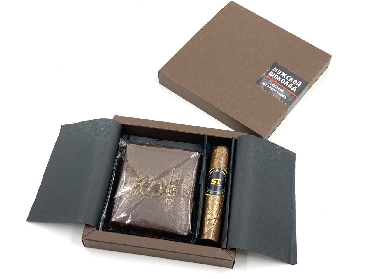 Шоколадное портмоне — это остроумный и изысканный десерт из бельгийского шоколада. Внутри этого съедобного аксессуара скрывается начинка, достойная истинного ценителя: нежная ореховая джандуйя в обрамлении трёх видов хруста. Насыщенный дроблёный орех в карамели, воздушный рис для лёгкого контраста и карамельный фильетин — вместе они создают текстурную симфонию, где каждый следующий укус открывает новый оттенок.