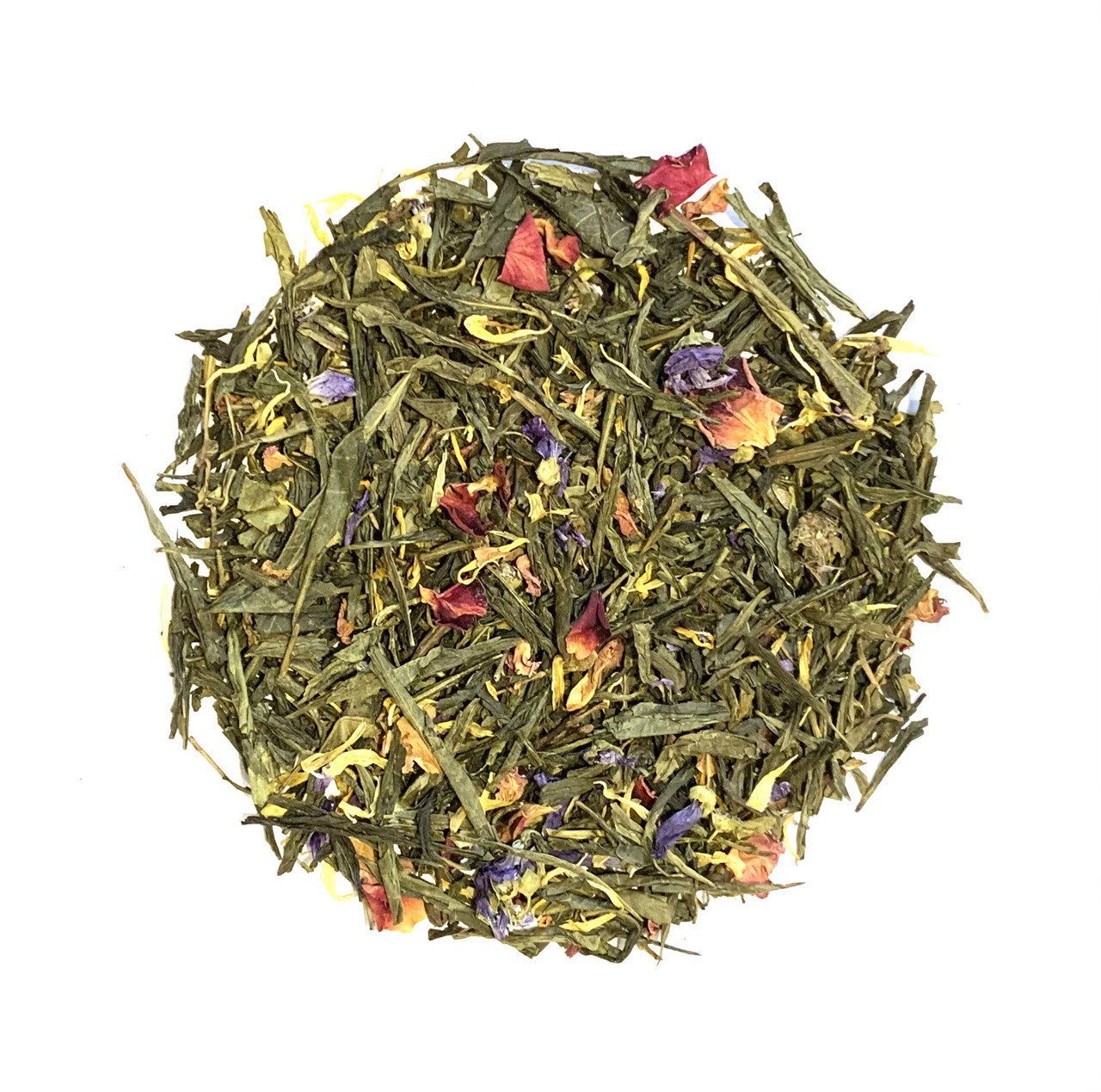 Китайский зелёный чай сенча, календула лепестки, роза лепестки, мальва цветы.