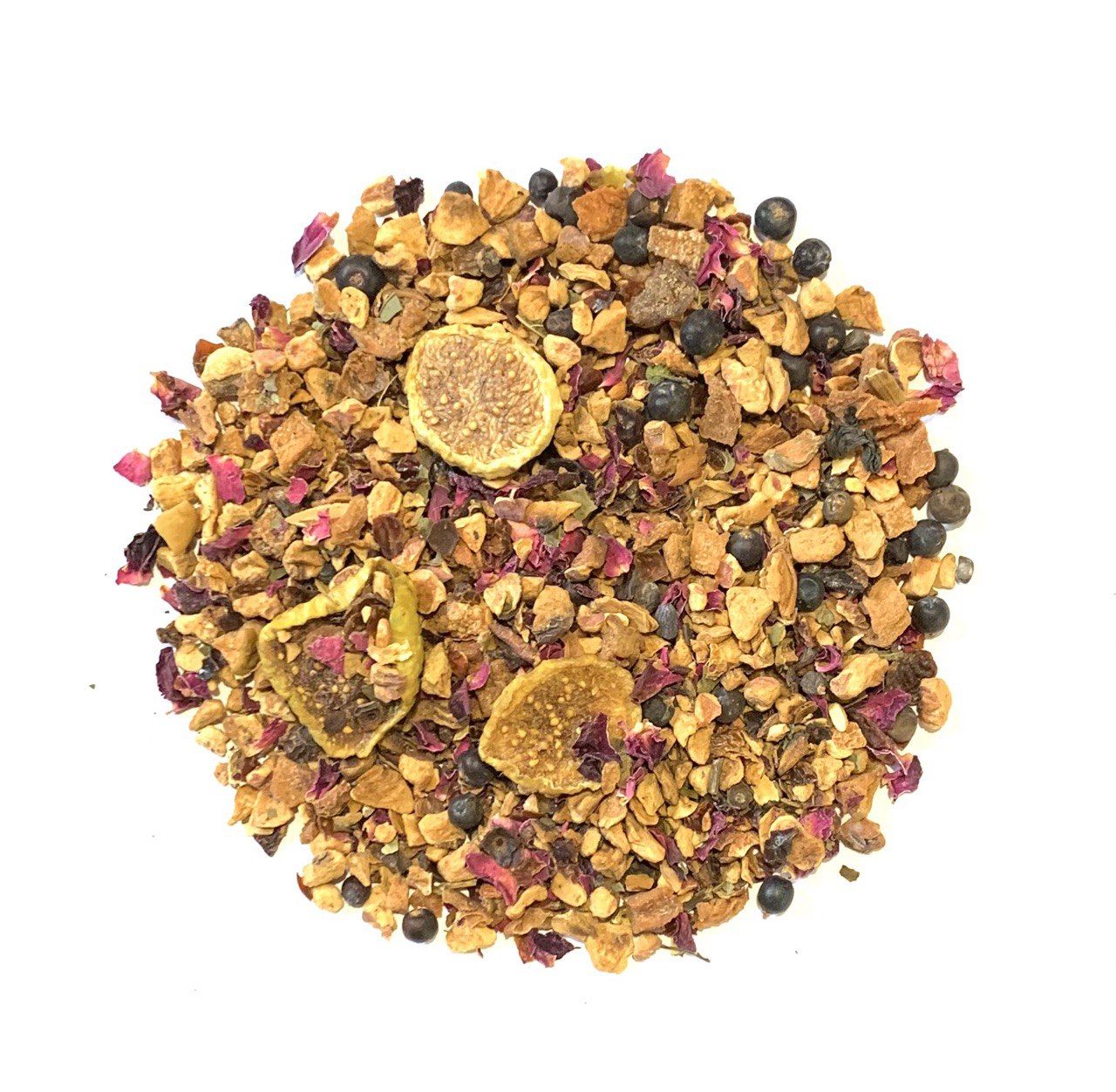 Состав: плоды шиповника, ягоды Годжи, ромашка, листья мелиссы, листья ежевики, мята, ягоды облепихи