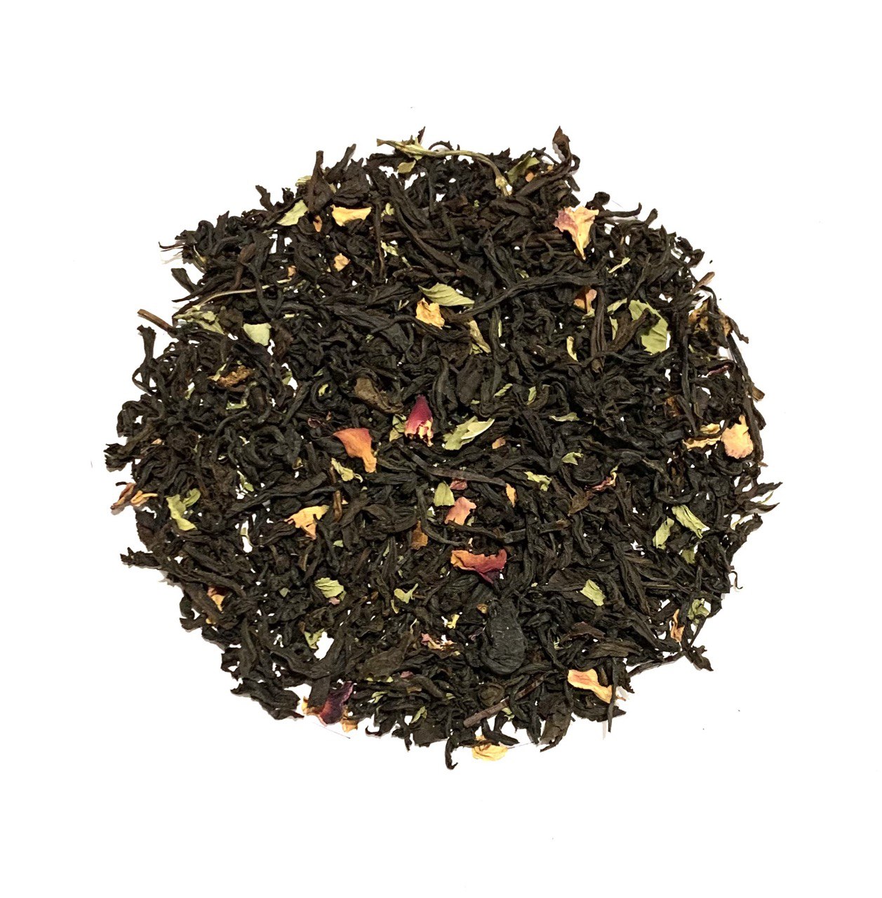 Индийский чёрный чай, ягоды клубники, мята, лепестки розы.