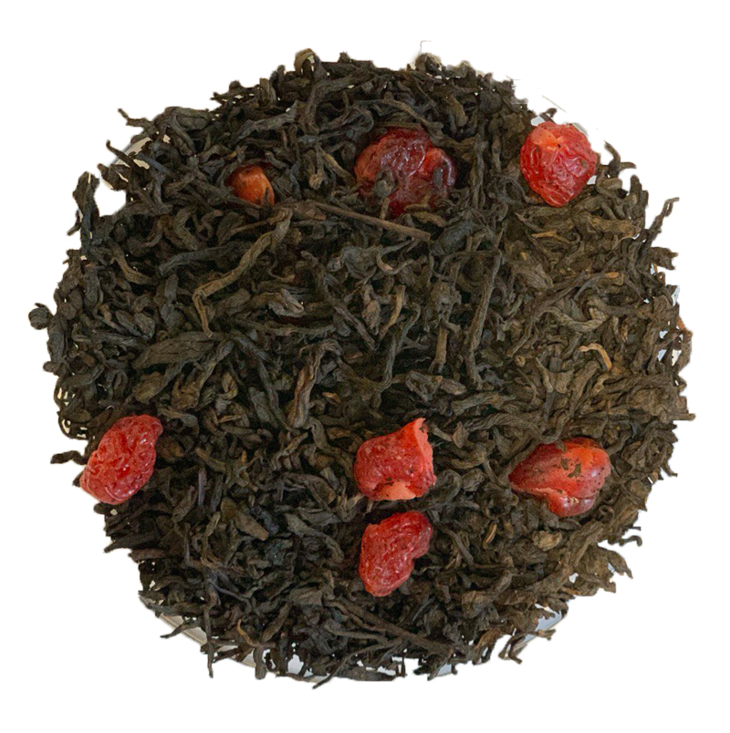 Купаж на Шу Пу Эре с ягодами и ароматом вишни.