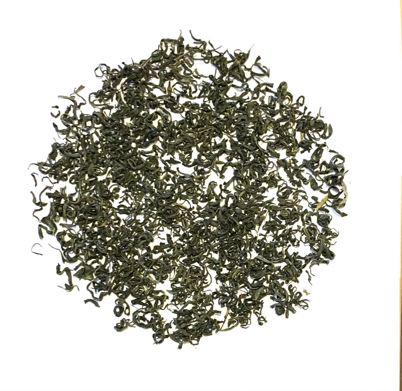 Классический зеленый чай провинции Юньнань с единообразным и ярким вкусом. Для этого сорта берут первый, второй и третий листы чайной флеши. Листья скручивают продольно, оставляют на некоторое время для легкой ферментации и отправляют на сушку. Как и много веков назад, сушат «Зеленый Юньнань» на горячих противнях в глиняных печах. При таком способе конечный результат целиком зависит от мастерства человека, который управляет процессом. На протяжении нескольких часов ему нужно поддерживать определенный уровень температуры и влажности, а также следить за тем, чтобы сырья на противне было не слишком много или мало.